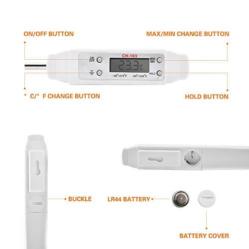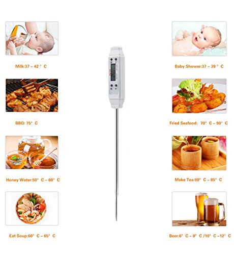 - 【ANTI-SCALD】This food thermometer is made up with an anti-burn design, unique humanized probe tube, you can freely convert, effectively prevent the temperature was burned.