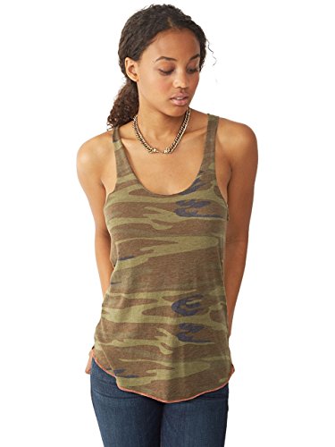 This top-ranked women's tank is now even more versatile in our new novelty prints. Made of our so-soft eco-jersey, this racer back tank has a rounded bottom and mirrored hem. Part of our eco-friendly alternative earth collection.