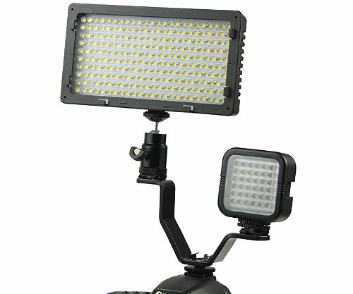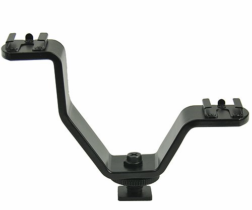 ePhoto Small DSLR Camera V bracket with 2 Standard Flash Hotshoe Mounts for LED Panel Mice and LCD Monitor H629