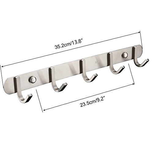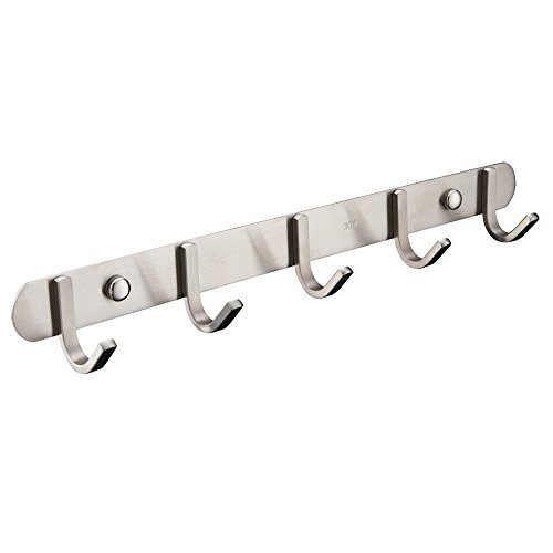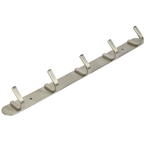 Mellewell Hook Rail Rack Wall Hanger with 5 Hooks, Stainless Steel Brushed, 8011H5
