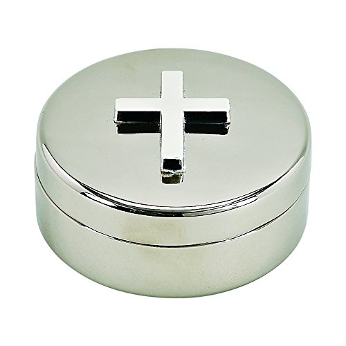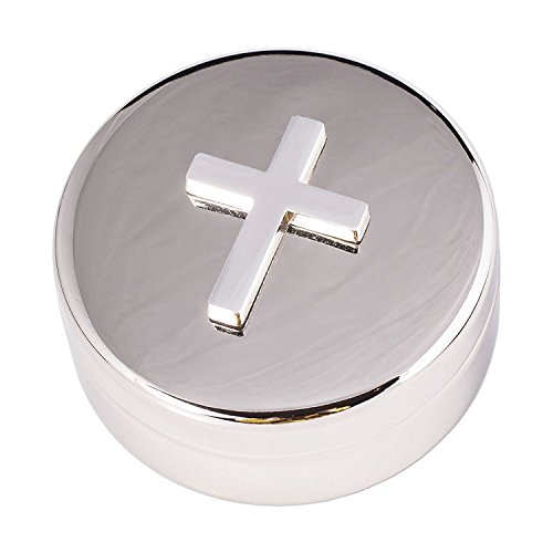 Silver Round Box W/Cross, NP 2.25" D by 1home