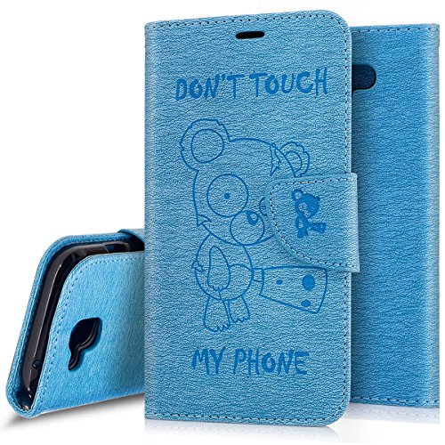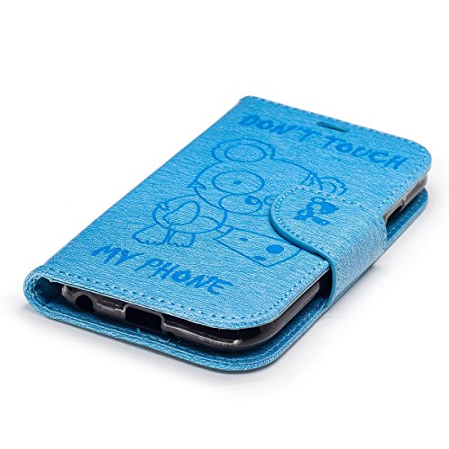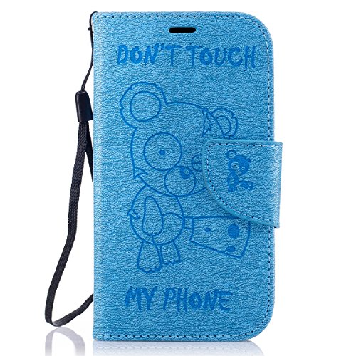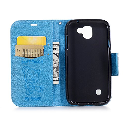 LG K3 2017 Case, LG K3 2017 Wallet Case,PHEZEN Cute Bear Don't Touch My Phone Design PU Leather Wallet Case Stand Flip Case with Credit Card Slot forLG K3 2017 , Blue