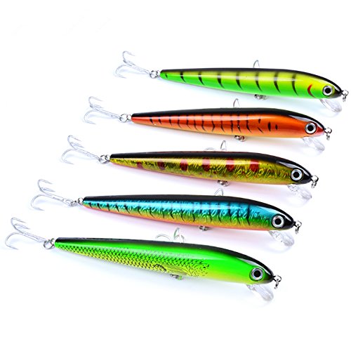 -. Binding : Misc. -. Brand : Fishcm -. Color : Color random -. EAN : 6086227104107 -. Feature : Include:5pcs;Length:17.6cm;Weight:30g / Species: All Freshwater Game Fish,fish body with steel ball. / Technique: Cast and retrieve with erratic action simulating a tasty bait. / For best resultes, use a double loop knot with 8-10 lb test line. / Color : 5 color -. IsMemorabilia : 0 -. Label : Fishcm -. Manufacturer : Fishcm -. PackageQuantity : 5 -. ProductGroup : Sports -. ProductTypeName : SPORTING_GOODS -. Publisher : Fishcm -. Studio : Fishcm -. Title : Fishcm 5pcs 17.6cm/30g Minnow Hard Bait Fishing Lure Set
