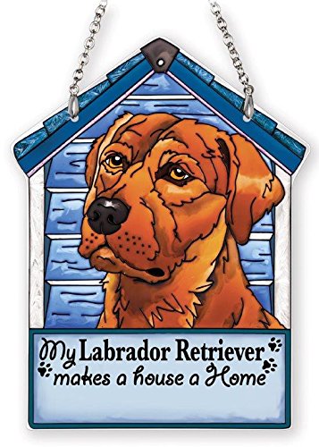 Amia 42104 Hand Painted Glass Brown Labrador Retriever Dog House Suncatcher, 5-1/2 by 7-1/4-Inch