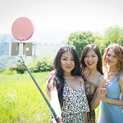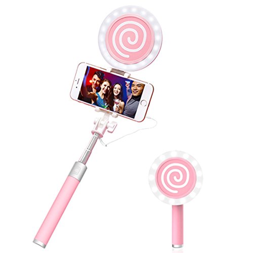 Selfie Stick with Light, MOCREO Lollipop Wired Selfie Stick with 360 Degree Led Fill Light for iPhone 6s/6/6 Plus(not including iphone7),Samsung Galaxy S7/S6/Edge, Note 5/4(pink)