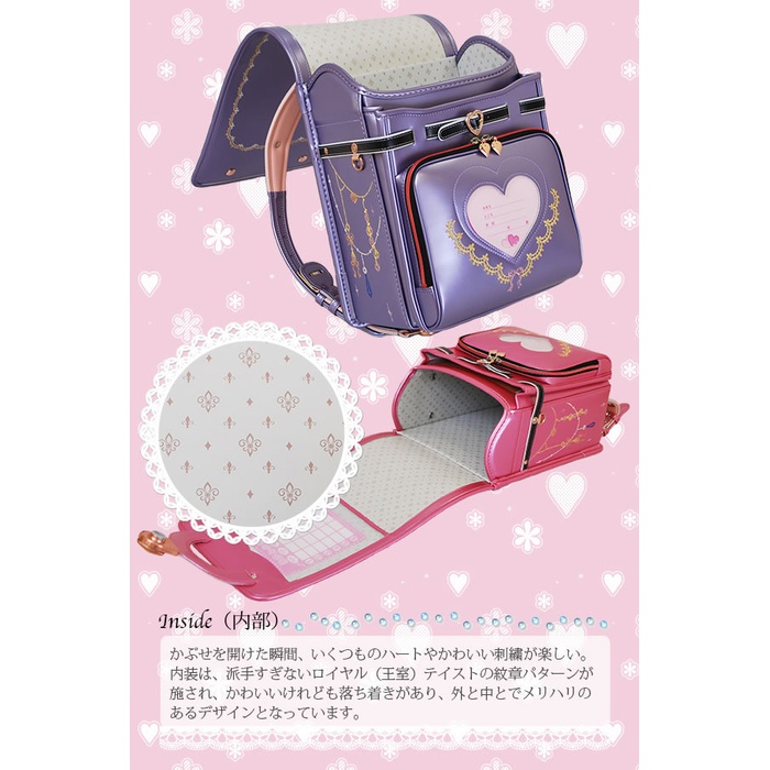 A4플랫 파일 수납 사이즈●소재:클라리노/《레미니카》/ ●무게:약1,300g ●컬러:펄 핑크펄 lavender(전2색) ●금구:핑크 골드●보증:6년간 무료 보증이 붙어 있음 광택감이 있는 펄이 어른 # 스위트한 디자인을 돋보이게 한다.오는《피타란도세루》은 가장 손이 닿는 장소,“자물쇠”를 디자인하는 것으로 초등학교 생활을 보다 즐겁게 색칠하는 새로운 란도세루(초등학생이 어깨에 매는 가방)의 형태를 제안합니다.오는《피타란도세루》은,창업66년을 맞이한 주식회사 마츠모토가 만들어 내었 혁신 적 란도세루(초등학생이 어깨에 매는 가방)입니다.우리들은 여러 해 배양해 온 란도세루(초등학생이 어깨에 매는 가방)의 노하우와 폭넓은 상품을 세상에 보내어 온 기획력의 집대성으로 해 전혀 새로운 자물쇠 “오는《피타》”를 개발했습니다.모두는 아이 들이 웃는 얼굴이 되는 란도세루(초등학생이 어깨에 매는 가방)를 만들기 위해서(때문에).일본의 문화이고, 초등학생의 심볼이라고도 말할 수 있는 란도세루(초등학생이 어깨에 매는 가방)를 통하고, 사물 을 중요시 하는 기분이나,상식으로 구애되지 않는 자유로운 발상을 전해지면 이렇게 기쁜 것은 없습니다.