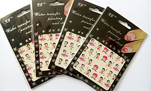 - Title : Highsun 2 Packs Betty Boop Nail Stickers Beautiful Fun Colorful Fashion nail stickers tattoo Water Transfer Nail Art Decal Manicure Decals Nail Art