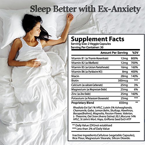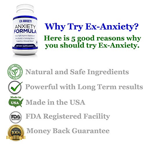 -. Binding : Health and Beauty -. Brand : Optimal-Effects -. Color : White Blue -. EAN : 0640746697135 -. Feature : ALL NATURAL SAFE and EFFECTIVE ANTI-ANXIETY FORMULA: Ex-Anxiety is a new anxiety stress relief product that has been designed to rapidly reduce anxiety stress and panic attacks - Quickly feel the feeling of relaxation naturally. All ingredient used in Ex-Anxiety has been researched and carefully combined to create the most powerful, anti-anxiety formula available to you. BEST ANTI-ANXIETY SUPPLEMENT AVAILABLE! Use as a mood enhancer, anti-anxiety pills or a natural stress relief supplement. / QUALITY ASSURED: Made in the USA, and is manufactured from a FDA registered facility that follows GMP standards. Products are tested in a 3rd party testing facility to ensure the quality. All Natural Anti-Anxiety formula dietary supplement. Our capsules are veggie caps. No gluten, dairy, corn, eggs, soy, or any other animal products to give you the most natural blend of ingredients. No fillers have been used; we believe that Nature has the key to many problems. / MOOD ENHANCER SUPPLEMENTS: help with anti stress - Stress Reduction Supplement - Can be used as depression pills. Also has been known to reduce depression, stress and anxiety. All Natural Mood Enhancement Supplement. Contains 12 powerful, fast-acting ingredients. Each ingredient works synergistically together to produce an effective product. ASHWAGANDHA, St. John's Wort, Valerian, Gaba, 5-HTP, Chamomile, B-Vitamins and many more natural ingredients. Mood booster pills - #1 Anxiety Pills. / RANGE OF USES: Can reduce anxiety, reduce depression, stress, depression pills, and depression supplement. Anti-Anxiety Formula only uses premium herbal supplements and health care products. Ex-Anxiety Stress & Anxiety is designed for -effective stress, anxiety, panic attack, and depression relief with none of the negative side-effects of addictive prescription medications. Our powerhouse blend of herbal ingredients combine together to Limit Stress - Improve Mood - Enhance quaintly of life. / MANUFACTURER GUARANTEE: Safe like any vitamins and dietary supplements your currently taking. Third party testing has been completed to ensure the quality of Ex-Anxiety. If you are not totally satisfied, Optimal Effects will return your money. Best results are found when taking the supplement consistently for around 3-4 days. Ex-Anxiety does have fast many fast acting ingredients within it, and also has many that help to naturally calm oneself over a few days of consistency. -. IsAdultProduct : 0 -. Label : Optimal Effects -. LegalDisclaimer : We recommend that you do not solely rely on the information presented and that you always read labels, warnings, and directions before using or consuming a product. Also please consult your doctor if you are currently taking any prescription medications prior to consuming. Content on this site is for reference purposes and is not intended to substitute for advice given by a physician, pharmacist, or any other licensed health-care professionals. Information and statements regarding dietary supplements have not been evaluated by the Food and Drug Administration and are not intended to diagnose, treat, cure, or prevent any health conditions. -. Manufacturer : Optimal Effects -. PackageQuantity : 1 -. ProductGroup : Health and Beauty -. ProductTypeName : HEALTH_PERSONAL_CARE -. Publisher : Optimal Effects -. Size : 150cc -. Studio : Optimal Effects -. Title : Natural Anxiety Pills Anti Stress Mood Enhancer Depression Supplement Made in USA - Calming Depression and Anxious Feelings - Anti Anxiety Supplement Men Women Kids -. UPC : 640746697135
