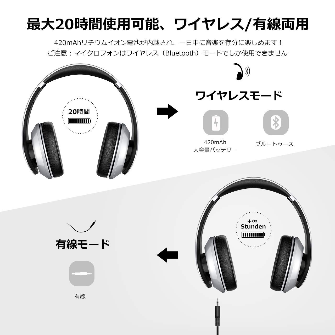 💿【20時間連続再生可能&3.5mmオーディオケーブル付き】:ワイヤレスヘッドホンはバッテリーが長持ちしないと思われがちですが、本機はそのようなイメージを覆しました。 内蔵リチウムイオン電池が420mAh、バッテリーの持続時間の延長は、リチウムイオンバッテリーの大きさと形状をカスタマイズして、イヤーカップ内部の空間を最適化することで、フィット感や快適な着け心地を損なうことなく実現しました。 これにより、ヘッドホンをワイヤレスで最大20時間使用できるようになりました、22時間の通話も可能です。3.5mmオーディオケーブルジャック付き、万が一電量が切れた後に3.5mmケーブルを通じてスマホと接続してケーブルヘッドホンに変身させ、引き続き音楽を楽しめます。更に、軽量でありながら高い耐久性を備えています。ヘッドバンドのバネと回転部分にはステンレススチールを採用し、毎日の使用にもヘッドホンが十分に耐えられるように設計されています。 .