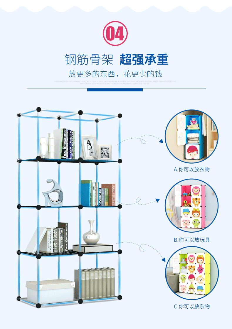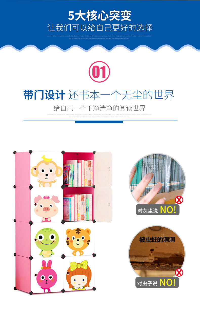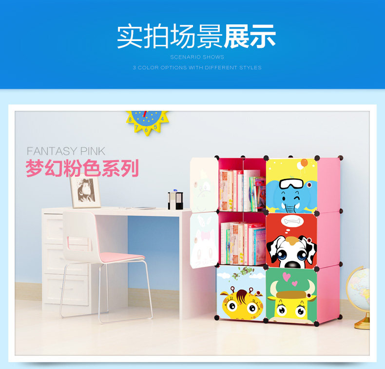 Bookcase children bookshelf free combination simple shelf assembly receive storage cabinet is contracted