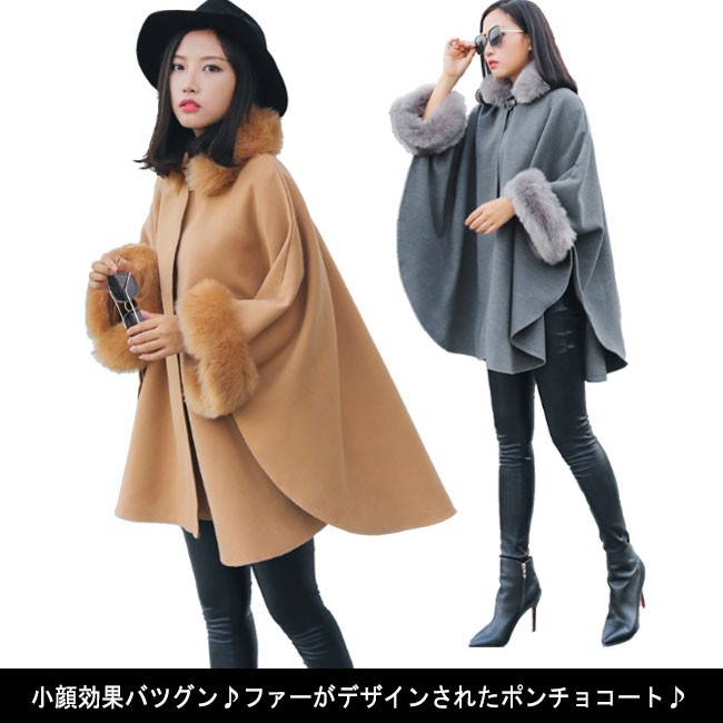 小顔効果バツグン♪ファーがデザインされたポンチョコート♪ | |