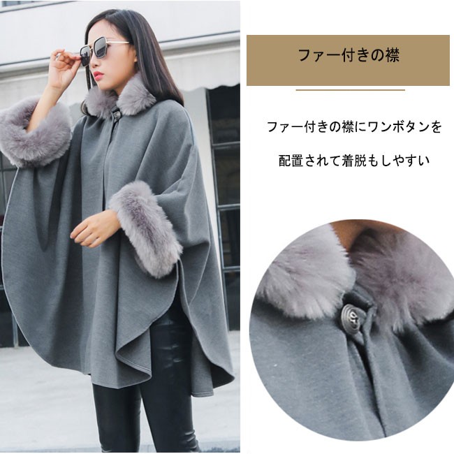 | 商品名 | ポンチョコート レディース ファーコート フレアコート ウールポンチョ マントコート シャコート Aライン ワンボタン ドルマンスリーブ 2018春新作 |