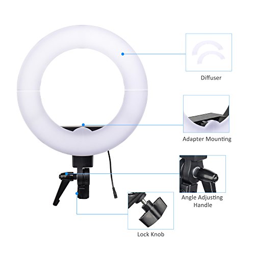 Product description: This 12" LED Ring Light heips you g et that professional studio quality lighting you always wanted. No need to waste time on adjusting multiple studio softboxes to achieve perfect lighting.