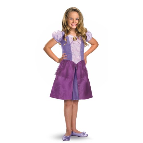 -. Binding : Toy -. Brand : Disguise -. Department : girls -. Feature : Includes 1 costume per package / Size is girl's Medium, ages 7-9 / Features a purple dress and Rapunzel cameo / Made of 100% polyester, dry clean only / Great for Tangle and P.R.Incess costumes -. Label : Disguise Direct Import -. Manufacturer : Disguise Direct Import -. MPN : 21472K -. PartNumber : 21472K -. ProductGroup : Toy -. ProductTypeName : TOYS_AND_GAMES -. Publisher : Disguise Direct Import -. Studio : Disguise Direct Import -. Title : Tangled Rapunzel Basic Costume Girls Medium 7-8