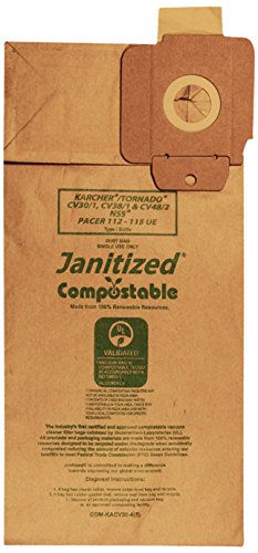 Janitized COM-KACV30-4(5) Compostable Paper Premium Replacement Commercial Vacuum Bag for Karcher/Tornado CV30/1 and CV38/1 & NSS Pacer 112 & 115 UE vacuums (Pack of 5)