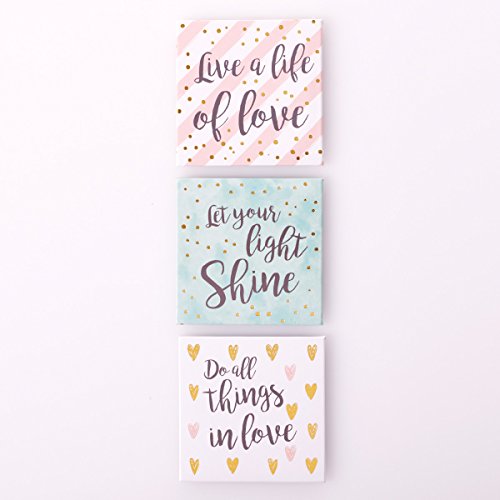 Fridge Magnet Set, Live a Life of Love Decorative Gilded Square Magnets, Set of 3