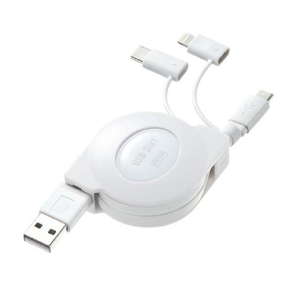 | 3種類のコネクタに対応する巻取りUSBケーブル。 |