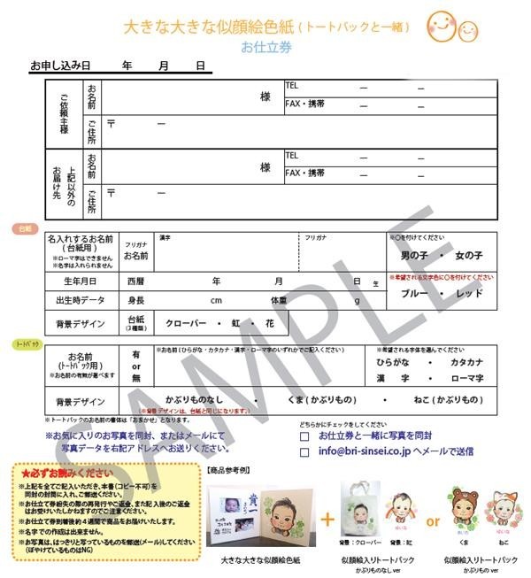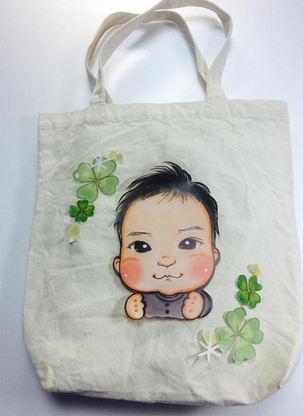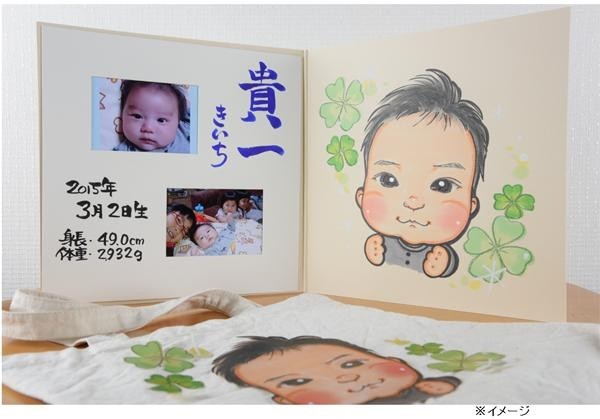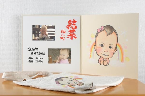 | オリジナルの似顔絵専用台紙。温かみのある似顔絵と名前(漢字・ふりがな)、出生情報をお入れいたします☆また、同じ似顔絵データから幼稚園や、お出掛けで使えるトートバッグをセットにしました!!新しいご家族を迎えられた方に、世界にひとつだけのプレゼントはいかがでしょうか☆ |