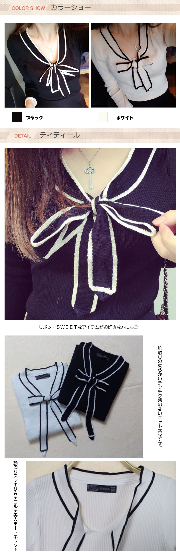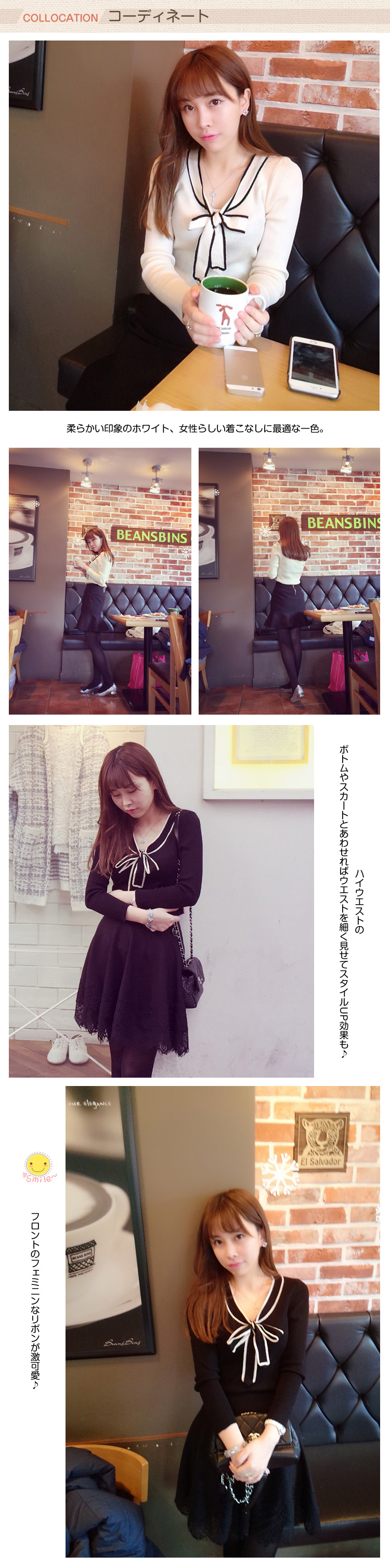 | 可愛さを引き立てるSWEETニット。薄すぎず厚すぎずの伸縮性があるニット素材は、アウターを羽織っても着膨れしない?フロントのフェミニンなリボンが激可愛?リボン?SWEETなアイテムがお好きな方にも◎ | |