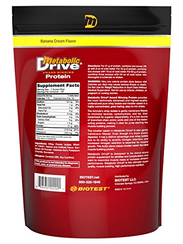Studio : Biotest LLC Publisher : Biotest LLC Binding : Health and Beauty Product Description Metabolic Drive® protein not only tastes as good as a decadent milkshake, it also provides a blend of the most technically advanced and highest-quality proteins available anywhere - making it the ultimate muscle building, performance-enhancing gourmet nutrition.* If your goal is fat loss, simply replacing a meal or two every day with a with a Metabolic Drive® shake will help you shed excess fat with no feelings of deprivation.* If your goal is to build muscle and strength, adding a couple of Metabolic Drive® shakes per day will give your body the extra protein it needs to build muscle and perform at its best.* *These statements have not been evaluated by the Food and Drug Administration. This product is not intended to diagnose, treat, cure, or prevent any disease. 0
