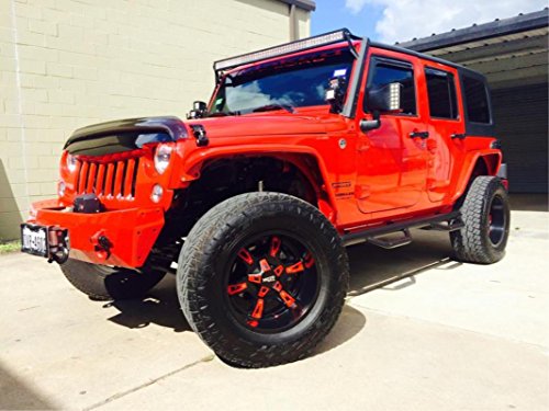 Satin black painted finish with red and chrome accents and center cap