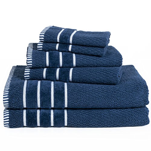 - Title : Bedford Home 6 Piece Egyptian Cotton Rice Weave Towel Set, Navy