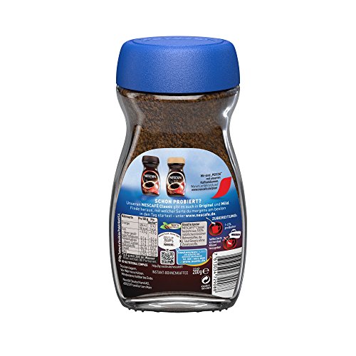 -. Binding : Lebensmittel & Getränke -. Brand : Nescafé -. EAN : 7613034729088 -. Feature : In Nullkommanix von 0 auf 1000. / Besonders kräftige, aromatische Röstung und intensiver Geschmack dank 100% hochwertiger Robusta Kaffeebohnen. / Mit dem NESCAFÉ PLAN investiert Nestlé bis 2020 weltweit mehr als 280 Mio. Euro in die lokale Weiterbildung und technische Unterstützung von Kaffeebauern sowie in die Zukunft des Kaffees durch Verteilung von jungen Kaffeesetzlingen. -. Label : Nescafé -. Manufacturer : Nescafé -. Model : 12247489 -. MPN : 12247489 -. NumberOfItems : 1 -. PackageQuantity : 1 -. PartNumber : 12247489 -. ProductGroup : Grocery -. ProductTypeName : GROCERY -. Publisher : Nescafé -. Studio : Nescafé -. Title : Nescafé Classic Strong, Löslicher Kaffee, 200g Glas (1er Pack)