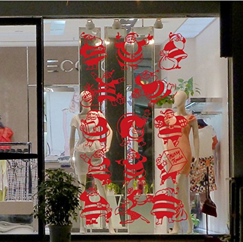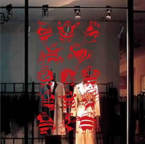 Christmas Window stickers 14pcs Red Home Party Decorations Children Wall Decals Clings (Santa Claus Red)
