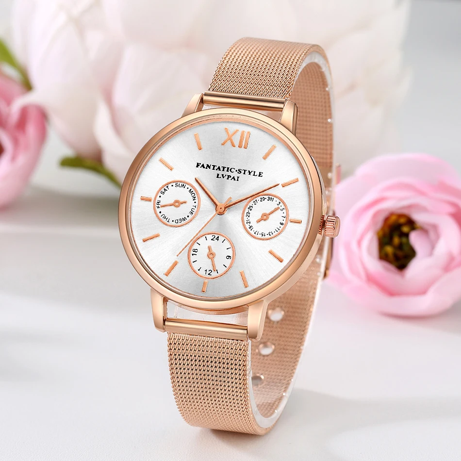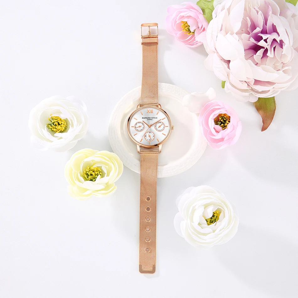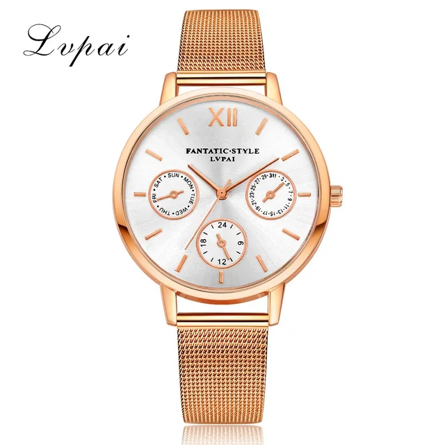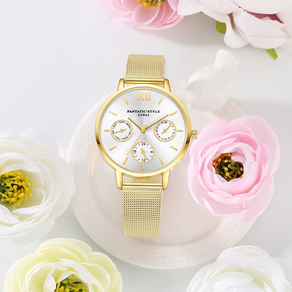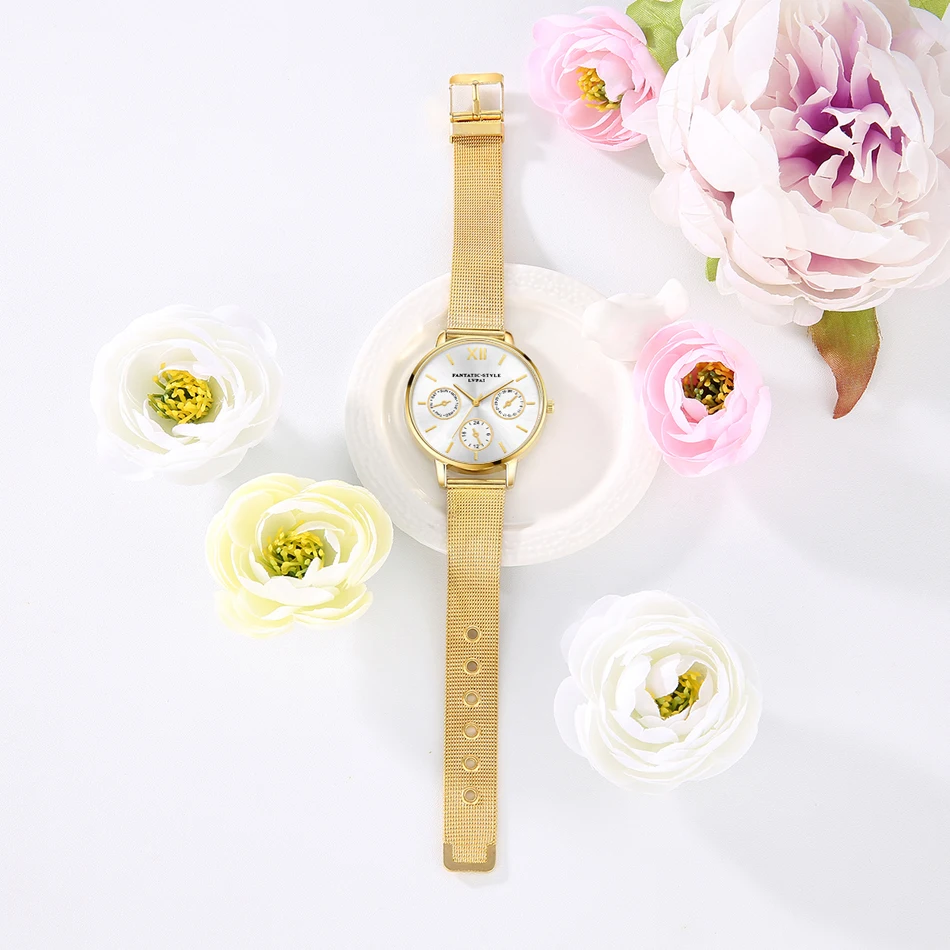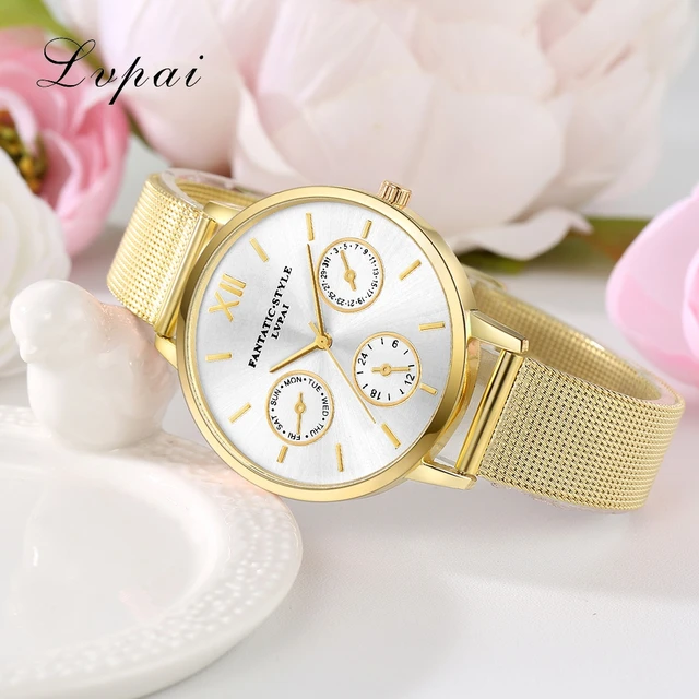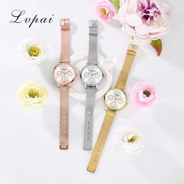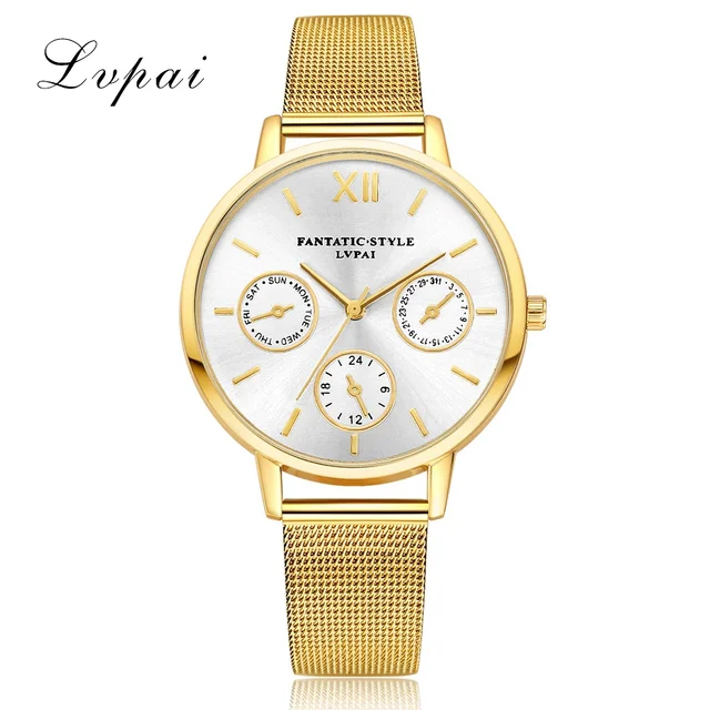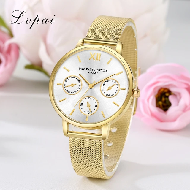 | [해외] Lvpai 브랜드 골드 럭셔리 여성 팔찌 시계 메쉬 합금 계약 손목 패션 시계 숙녀 만화 선물 시계 |