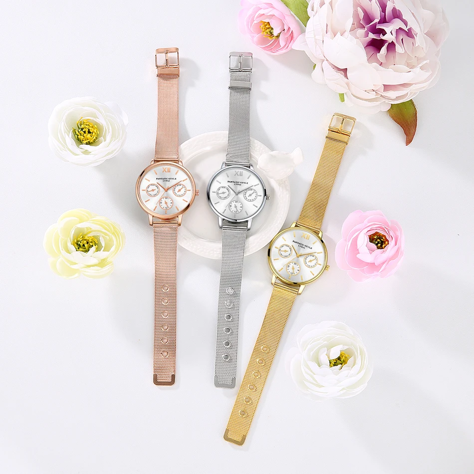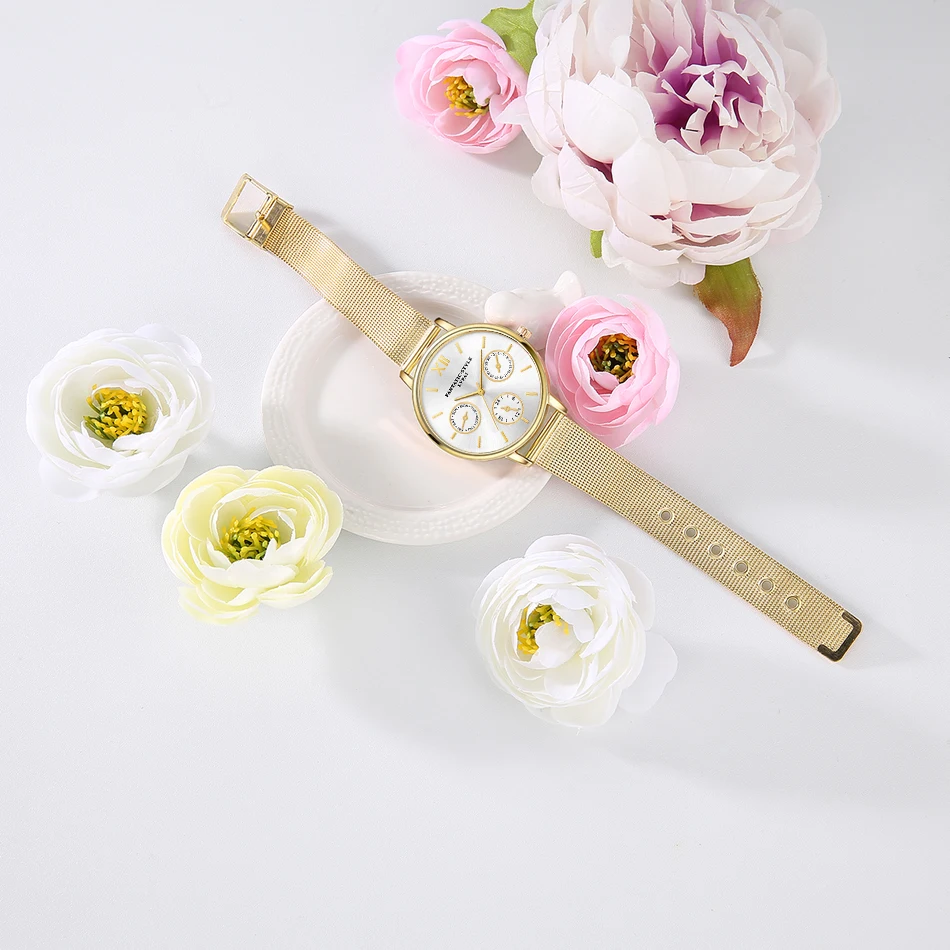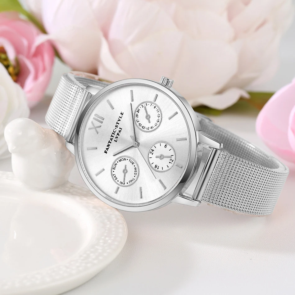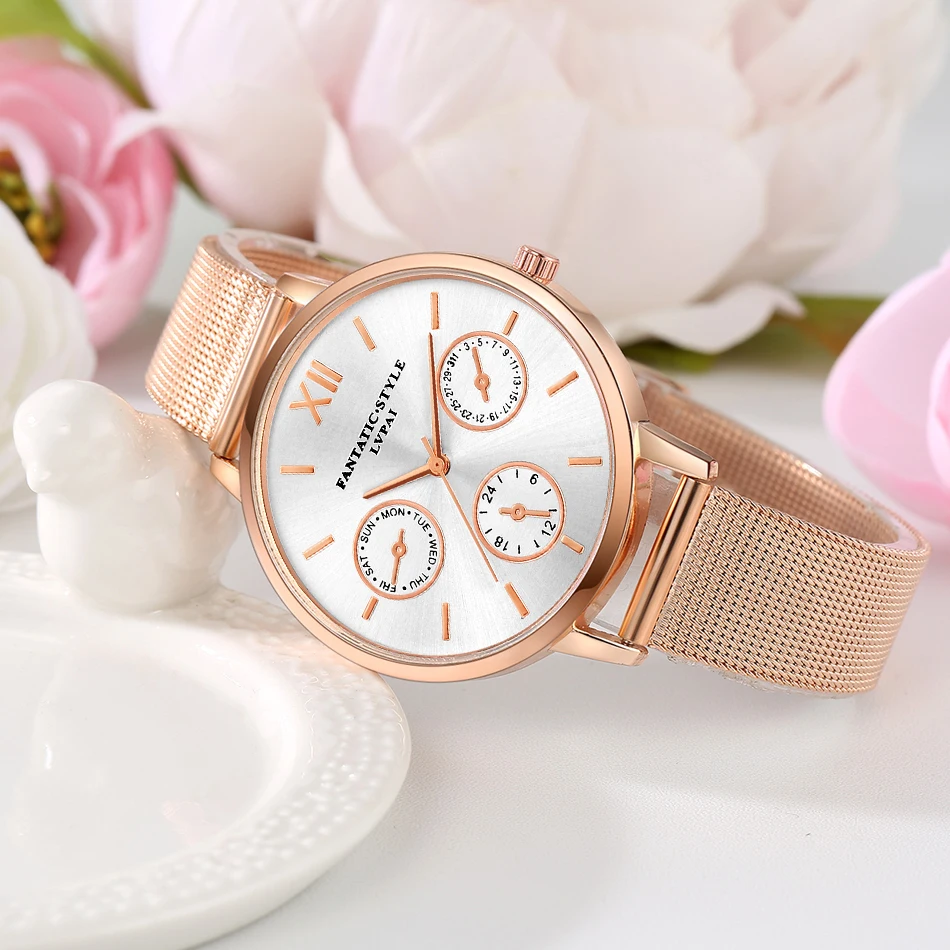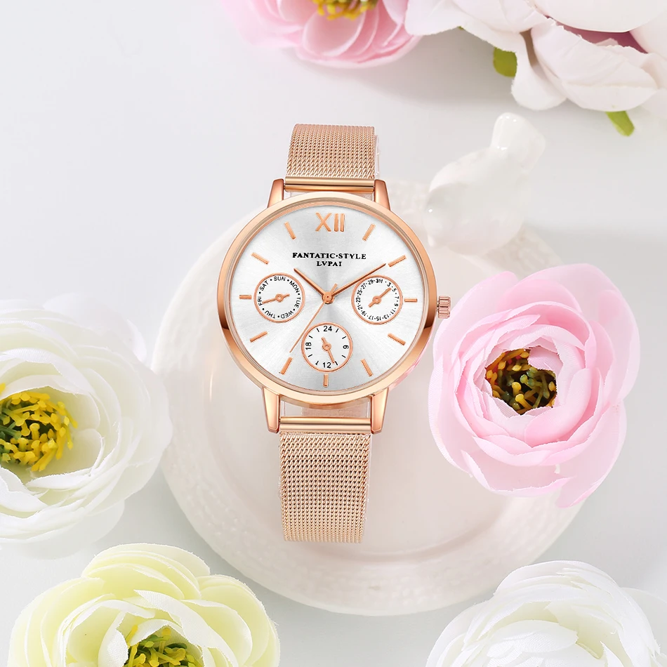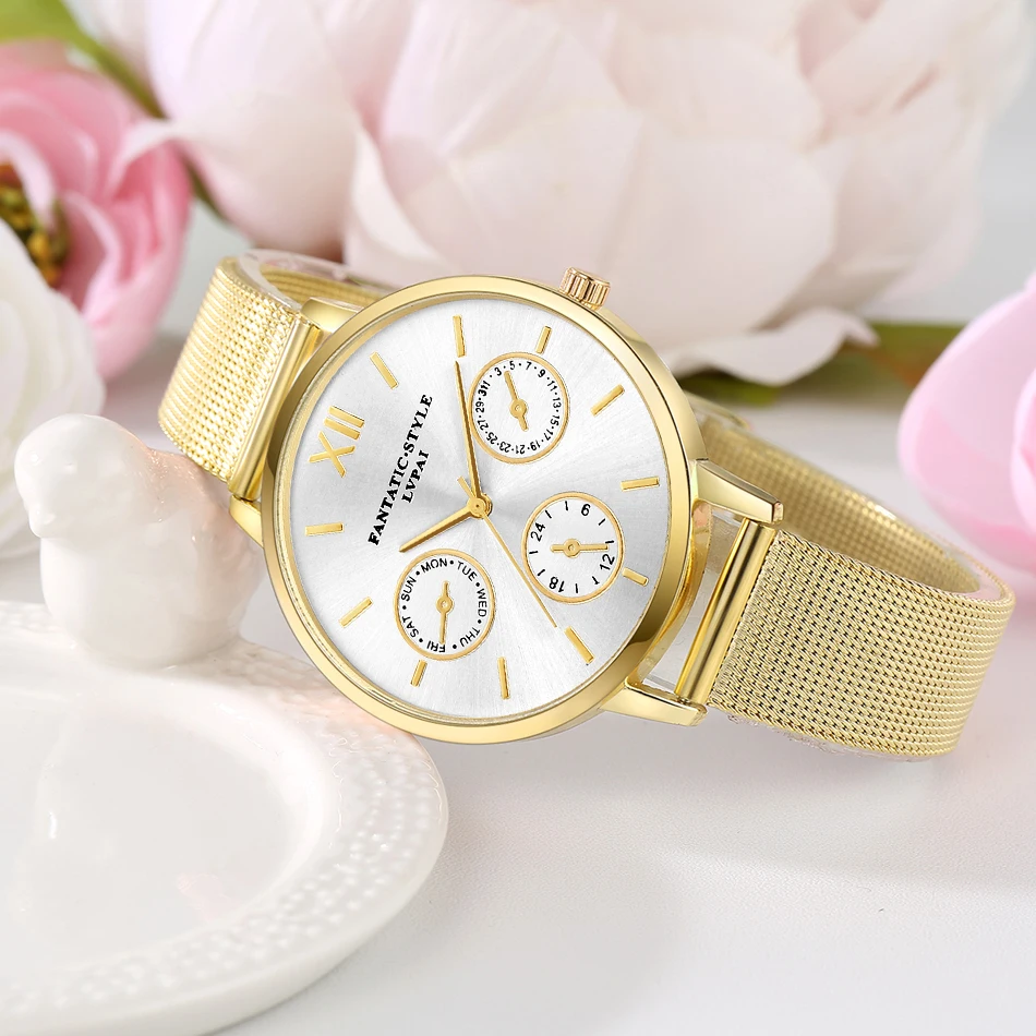 | [해외] Lvpai 브랜드 골드 럭셔리 여성 팔찌 시계 메쉬 합금 계약 손목 패션 시계 숙녀 만화 선물 시계 |