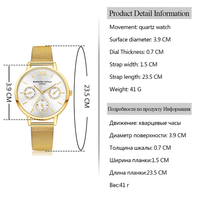 Lvpai 브랜드 골드 럭셔리 여성 팔찌 시계 메쉬 합금 계약 손목 패션 시계 숙녀 만화 선물 시계 운동: 석영 시계 포장 상세