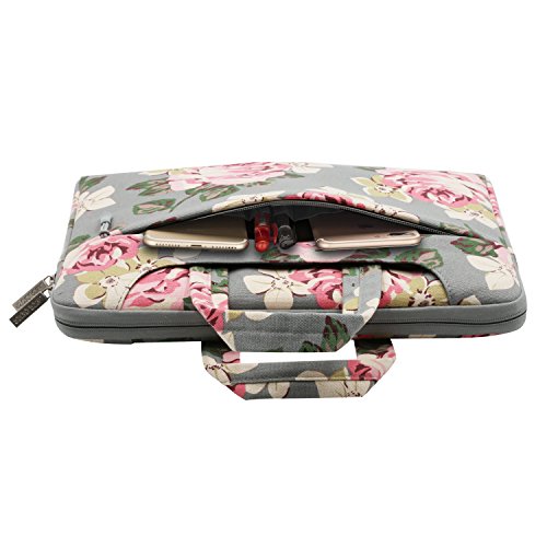 -. Title : Mosiso Canvas Fabric Rose Pattern Laptop Shoulder Messenger Handbag Case Cover Sleeve