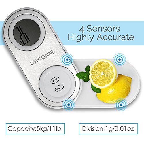 - 【4 Accurate Sensors】Digital Food Scale K-CAL equipped with 4 sensors to weigh your items with 5000g capacity, accurate 1g division, LCD screen and a measuring bowl. It can be used for everything in kitchen like Ingredients, Meat, Fruit, Vegetable, Rice, etc.
