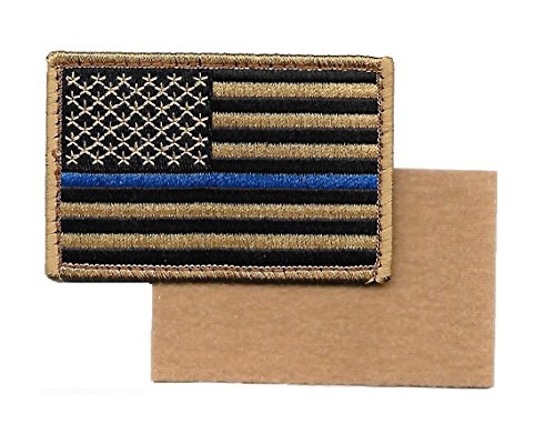 Desert/Coyote US Flag Thin Blue Line Patch for Police and Law Enforcement with Hook/Loop Backing