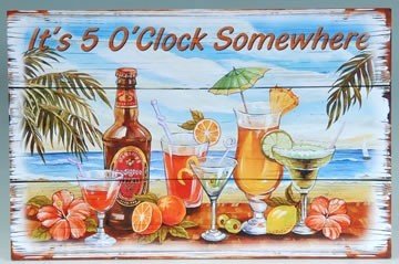 IT'S 5:00 SOMEWHERE TROPICAL PARTY WOODEN PLAQUE