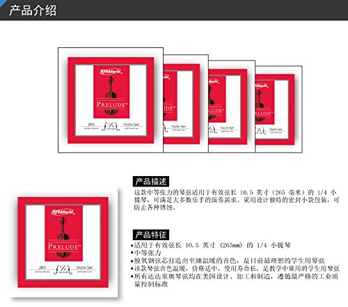 D'Addario Prelude Violin String Set, 4/4 Scale, Medium Tension