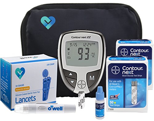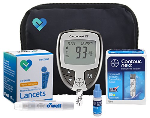 A glucose meter (or glucometer) is a medical device for determining the approximate concentration of glucose in the blood. New diabetic patients find it challenging to insure that appropriate supplies are accounted for, to receive accurate results for his/her glucose level test. This blood glucose starter meter kit provides all the appropriate supplies that is required to test your sugar level. The Bayer Contour NEXT Diabetes Kit includes a Diabetic glucose meter, 150 test strips, a box of OWell 30 gauge twist off sterile lancets; 100 count, a surgical lancing device, control solution & a carry case. This Diabetes EZ meter is the #1 most accurate glucose meter on the market. It has, easy to press buttons and is highly recommended for all diabetic patients especially seniors. The test strips will Only work with a Bayer Contour NEXT Meter and not with a Bayer Contour meter.