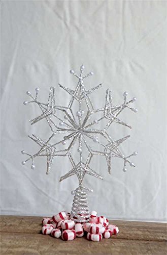 WHITE METAL STAR TREE TOPPER WITH GLITTER