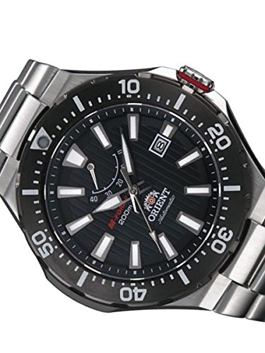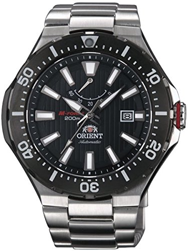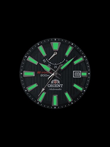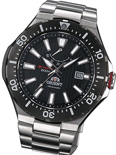 Studio : Orient Publisher : Orient Binding : Watch Product Description The Orient M-Force Delta dive watch has many strengths such as a pinstriped scuba black dial, a 120-click uni-directional rotating bezel with luminous PIP, a very handy power reserve indicator (shows up to 40 hours), a scratch-resistant sapphire crystal, a date window at 3:00, and a 49.1mm diameter stainless steel case. The case has drilled lugs too for putting on a rubber, or leather strap. The beautifully brushed finished matching bracelet is a delight to wear. A push-button deployant clasp with fine adjustment holes makes putting the watch on your wrist a breeze. Orient is well known for their exceptional bracelet quality. 24mm lug width. M-Force fact: It is often overlooked that this M-Force model is powered by the same 22-jewel Orient Cal. 40N5A automatic movement that is used in the top-of-the-line Orient Professional Saturation diver. This accurate and rugged movement is hackable and it can be hand wound by unscrewing the crown. This M-Force model has better than average luminous properties. Charge it with a bright light source prior to using it in the dark and you should be able to tell the time for several hours. It is a lot of watch for the money for sure. Water resistant to 200m (Certificated by ISO 6425 diver' s watches, ISO 764 anti-magnetic watches and ISO 1413 shock-resistant watches) Features Movement: Orient 22-Jewel Automatic (self-winding and hand winding) Case: Brushed and polished stainless steel, 49.1mm x 13.6mm thick. Back: Solid screw-in back Crystal: Scratch-resistant sapphire Band: Brushed stainless steel bracelet, push-button deployant. 24mm lug Water Resistant: 200 meters Warranty: 1 Year 0