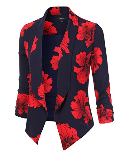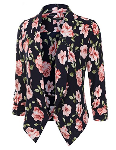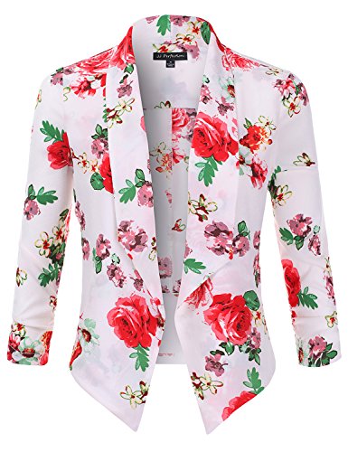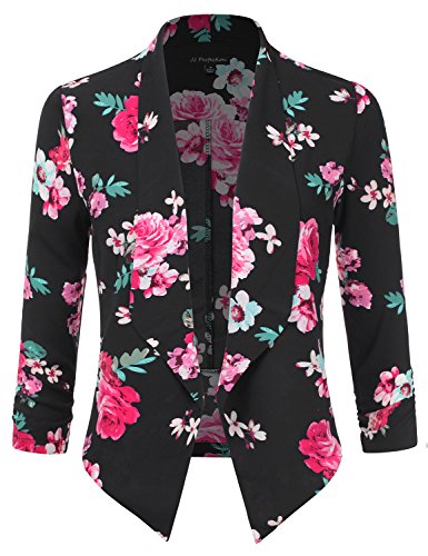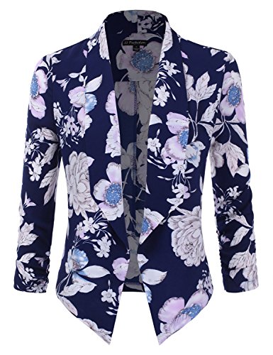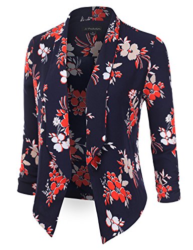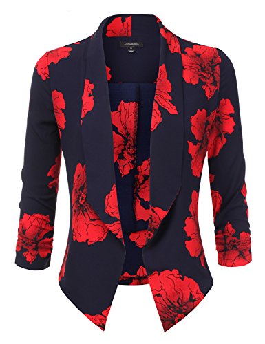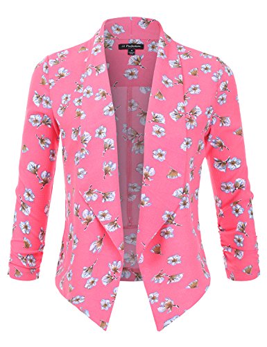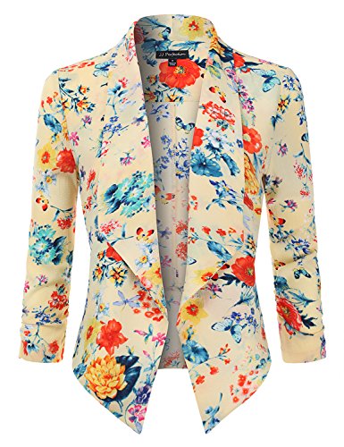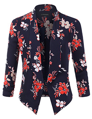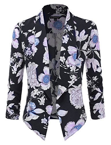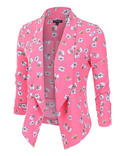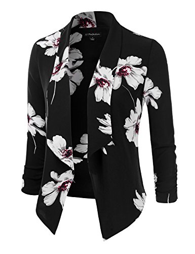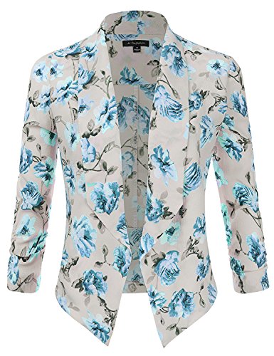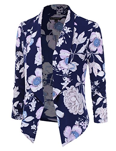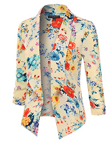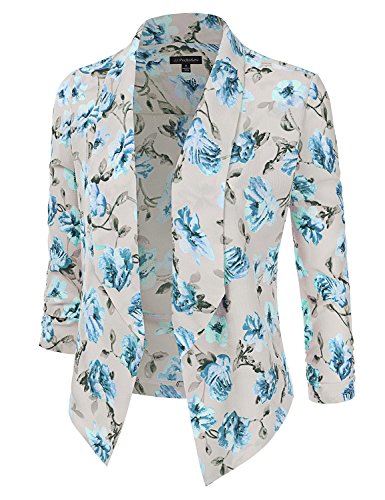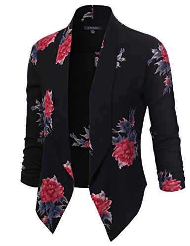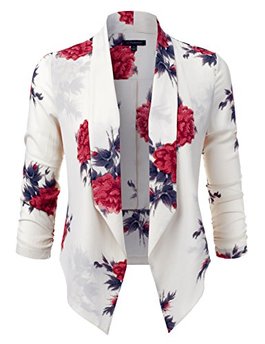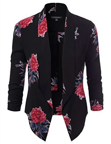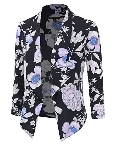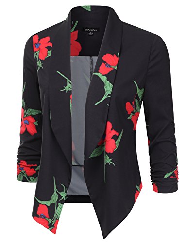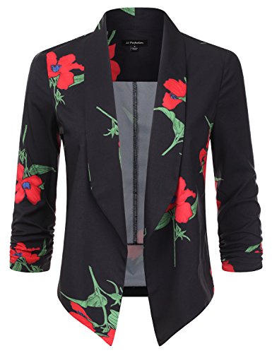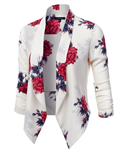 | (JJ Perfection)/Women/Suits Separates/DIRECT FROM USA/JJ Perfection Women's Floral Texture Woven Ruched Sleeve Open-Front Blazer |