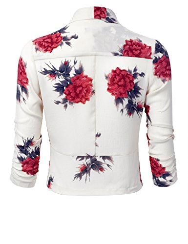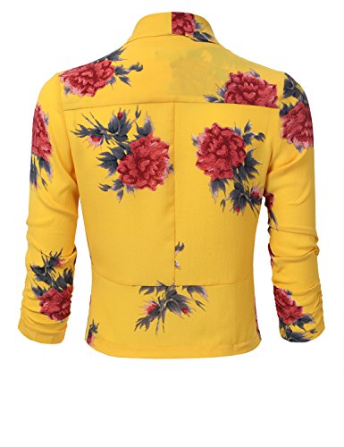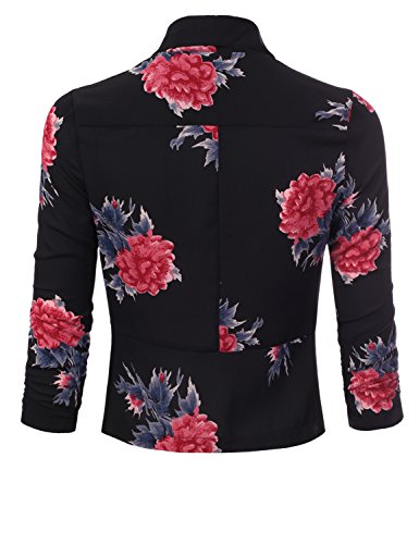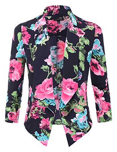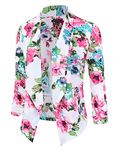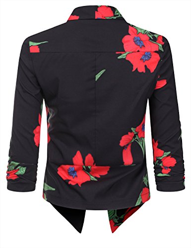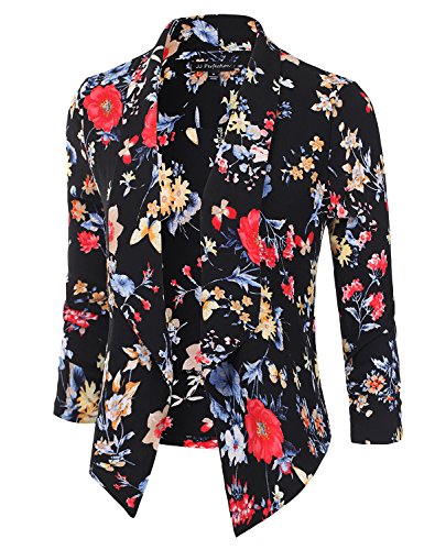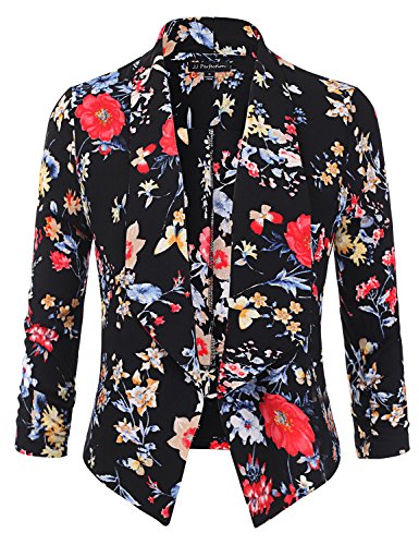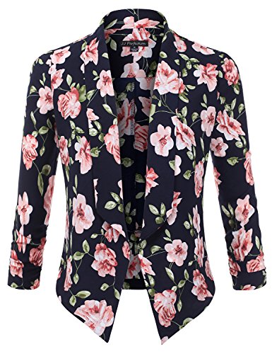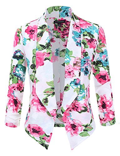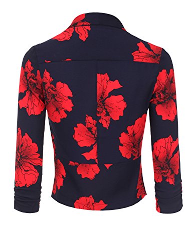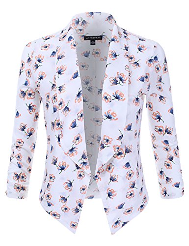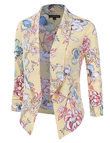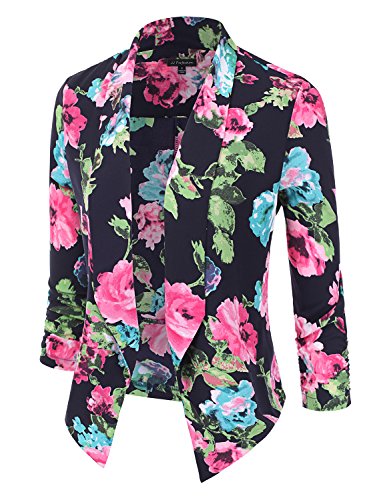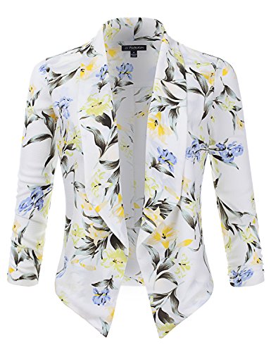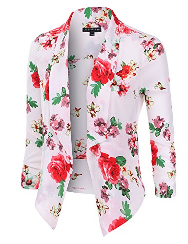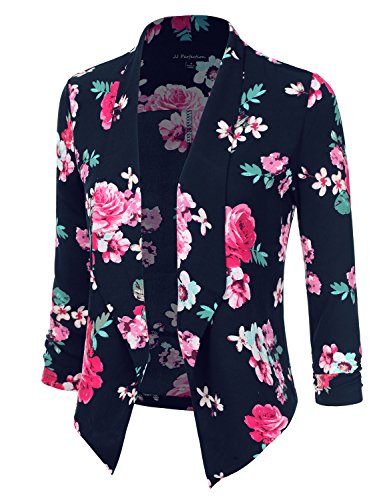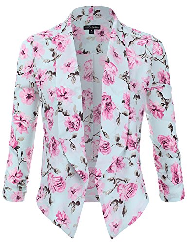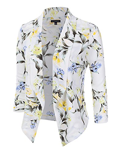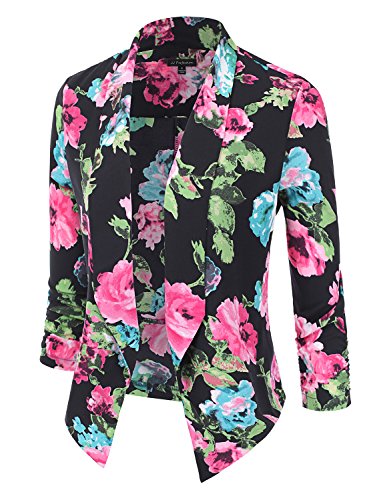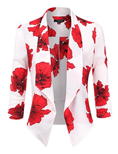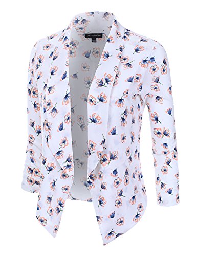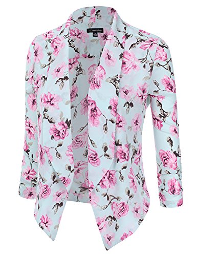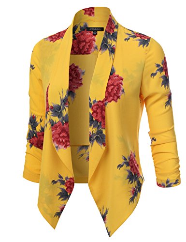 | (JJ Perfection)/Women/Suits Separates/DIRECT FROM USA/JJ Perfection Women's Floral Texture Woven Ruched Sleeve Open-Front Blazer |