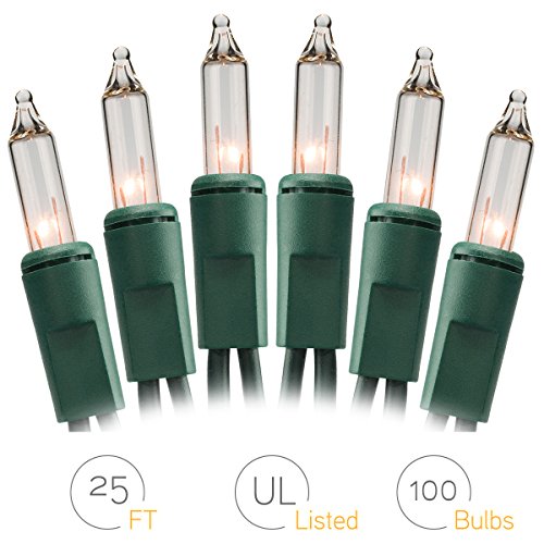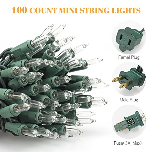 ON'H Christmas Lights 100-Count Clear Mini String Lights Set Indoor Outdoor Lighting for Christmas Tree Party Wedding Home Bedroom Grapevine Decoration 100 Bulbs Green Wire