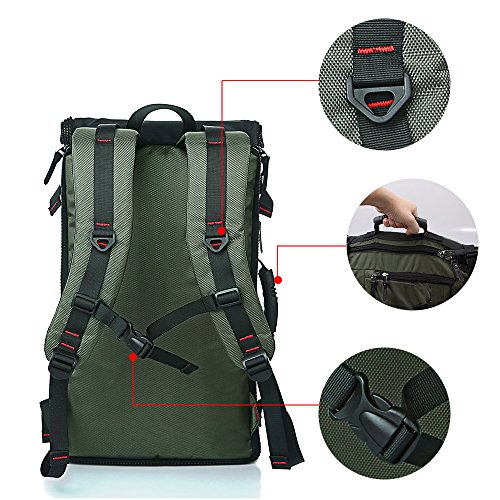 -. Feature : Dimension: Approx. 47x30x17 cm/18.5x11.8x6.7 inch (L x W x H) Capacity: 30L / Material: The backpack made with ultra-durable sturdy water-resistant oxford fabric and padded shoulder straps are adjustable. / Structure: 1 main zipper pocket, 2 front zipper pockets, 1 side mesh pocket. It fits up to 15 inch laptops. / Comfort: The body side and shoulder straps have excellent thick breathable mesh padding, offering your back plenty of cushioned comfort. The chest strap with buckle helps you lock your backpack in place securely. / Multipurpose: Multiple options for carrying. You can carry many ways as a backpack, as a duffle bag, as a shoulder bag or a handbag. It is perfect for weekend trips, overnight trip, travel, short hiking, camping, business and school.