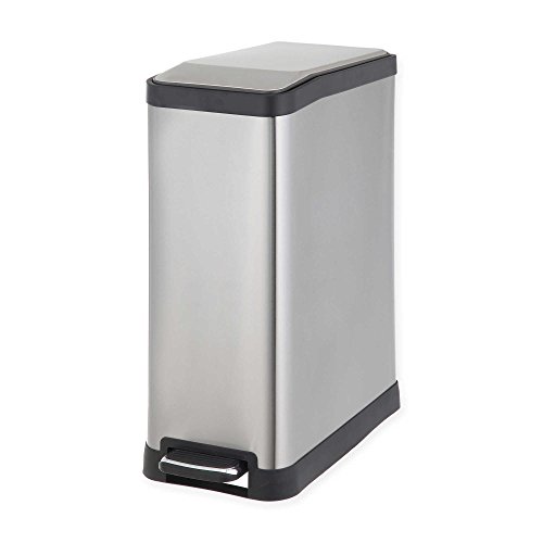 Testrite Rectangular 45-Liter Stainless Steel Step Waste Bin | 10.79" L x 20.2" W x 27.36" H