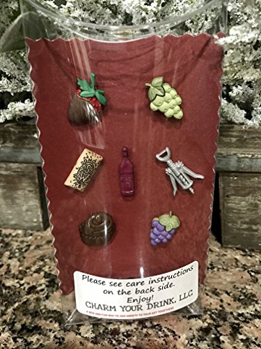 -. Feature : LOVE WINE & CHOCOLATE? Love entertaining? These adorable drink charms will get the attention of your guests! Note: The chocolate covered strawberry will vary from dark (pictured), pink or white chocolate. The chocolate candy may also vary from what is shown. All very nice! The grapes & other charms will remain the same. One of four bottle tag styles randomly included. Message me if you prefer one and I will make sure to include that one! / CHARMS MEASURE around 1". I work with thinnest magnet at 1/16" thick so they look close on your drink. All charms hand made by owner to ensure highest quality, and a 30 day no questions asked money back guarantee. / SHIPS FAST & SECURE WITH TRACKING: In a reusable 2 inch thick pillow box so they stay safe. / ONE CLICK & GIFT GIVING DONE: Gift message feature & four gift wrapping options available. See sample in pic! / A+ FEEDBACK SINCE 2014: Quality work to ensure charms stay upright on your drink & look fabulous! I am particular on placement of the magnet on the back of the charm to ensure the charm stays upright on your drink!