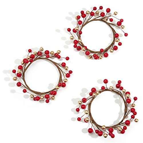 (LampLust)/Furniture Decor/Home Decor/DIRECT FROM USA/Holiday Candle Rings, Red and Gold Berry, Set of 3 - For Christmas, Thanksgiving, Parties and H...
