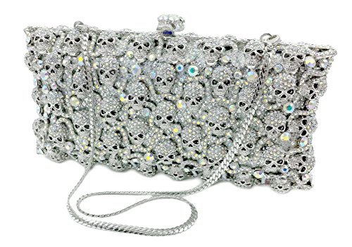 -. Feature : Beautifully hand-crafted, glamorous, "oscar-worthy", jewel studded designer hard case clutch/purse with a cachet of prestigious Swarovski inlaid crystals. / Hard case opens to 2.75 X 6 X 2.75D inches. Sturdy silver hinges pedestal feet, silver concealable/removable 10" snake chain. SP.R.Ing-loaded lock snaps shut with magnetic closures. Push down to open. / Luxurious silver leather inner lining. Black velvet storage bag with draw-string closure, sleek, black storage box (can be used as a gift box). / Great evening purse to hold makeup, phone, keys, cigarettes and other necessary valuables. / Dims: 7.5 x 4 x 1.75 (19.1 x 10.2 x 4.4cm) closed. Packed with extra care for safe shipping. Heirloom quality design. Elegant accessory for evening wear or as gift to last a lifetime.