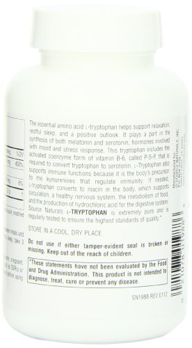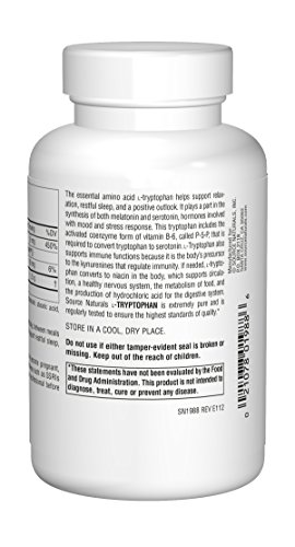 Helps support relaxation, restful sleep, and positive mood;Also supports immune functions; L-Tryptophan is extremely pure and is regularly tested to ensure the highest standards of quality;Converts to niacin, which supports circulation, a healthy nervous system, the metabolism of food, and the production of hydrochloric acid for the digestive system;Contains vitamin B-6, which is required to convert tryptophan to serotonin