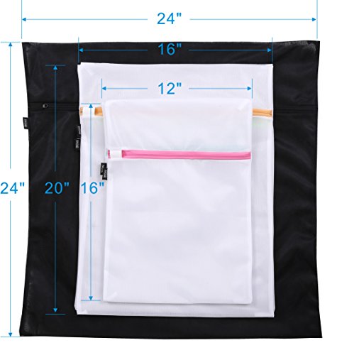 Package included: Set of 5 wash bags-Dimension:1 Black Extra Large Bag (24"x 24"), 2 Medium Bags (20"x 16"), 2 Small Bags (15"x 12")