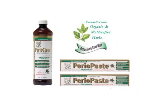 -. Feature : Includes 2 PerioPaste Toothpaste and 1 PerioClear Mouthwash / Naturally whitens teeth and leaves breath fresh and clean for hours / Dentist formulated professional strength oral health / Fluoride-free, preservative-free, alcohol-free, and sodium-lauryl-sulfate-free / Organic & responsibly wildcrafted herbs & patented extract of phytophenolin® ingredients which promote cell vitality